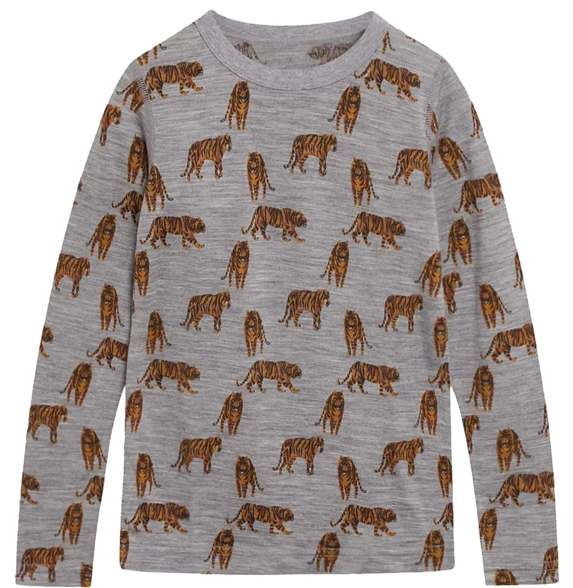 Das Hust and Claire Wolle-Seide Langarmshirt mit Tiger Motiv ist sehr weich, dehnbar und wärmend. Der gelungene Materialmix aus Merinowolle mit Seide ergibt ein hervorragendes Tragegefühl. Ideal für den Wald-Kindergarten . Wolle mit Seide-Materialmix ist Temperaturausgleichend und atmungsaktiv. Waldkinder lieben die weichen Wollsachen von Hust and Claire, man kann diese prima als dünne wärmende Zwischenschicht tragen, wenn es draußen kühler wird.
