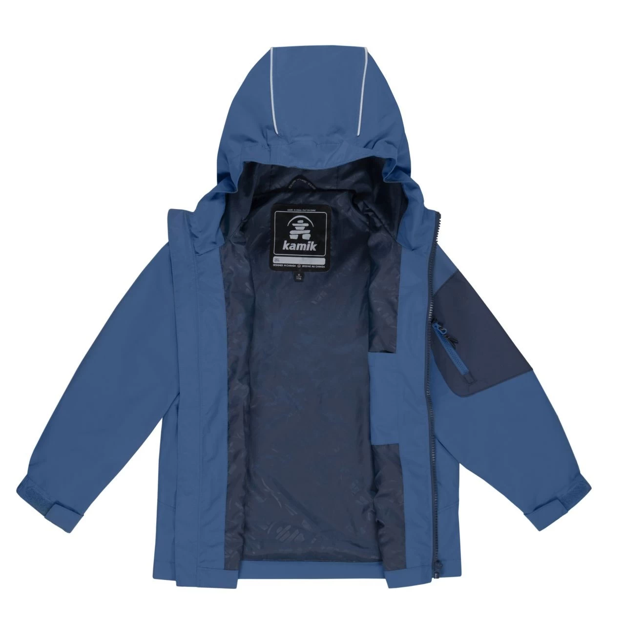 Robuste und wasserdichte Kinder Funktions-Outdoorjacke von Kamik. Bequem geschnitten, winddicht und atmungsaktiv. Hochwertige Verarbeitung mit vielen stylischen Details. Ideale Outdoorjacke für Kinder, die bei jedem Wetter draußen aktiv sind. Sehr gut auch für den Waldkindergarten geeignet. Geringes Eigengewicht, klein zusammenlegbar.