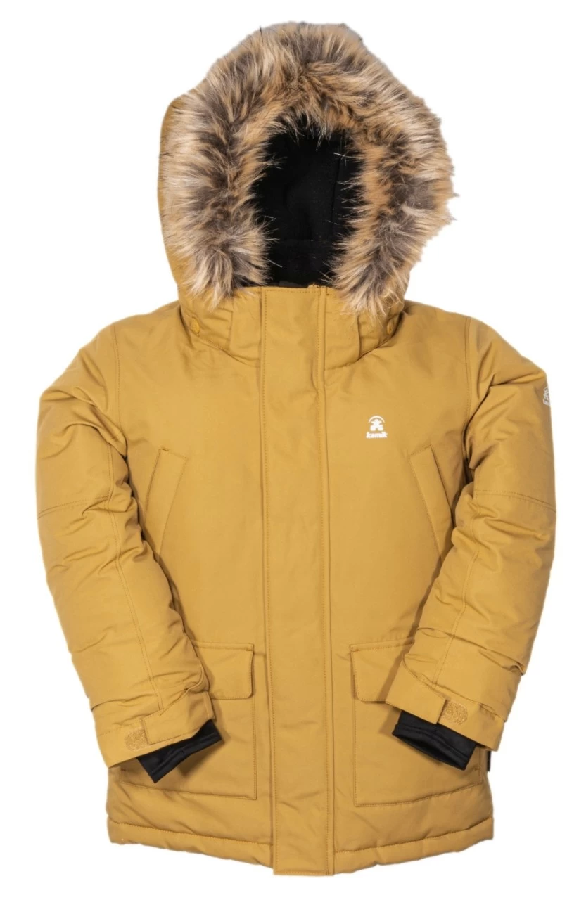 Atmungsaktive Kinder Thermo-Outdoorjacke von Kamik. Genau die richtige Winterjacke kaltes nasses Schneematsch-Wetter. Auch für den Waldkindergarten ist die Kamik Jacke besonders gut geeignet, weil sie zuverlässig warm und trocken hält. Bequem geschnitten, winddicht und wasserdicht. Hochwertige Verarbeitung mit vielen stylischen Details. Die zuverlässige Wasserdichtigkeit der Außenseite wird durch die spezielle BIONIC-Finish Eco Beschichtung erreicht. Diese wasserabweisende Imprägnierung ist ökologisch und basiert auf einer fluorfreien Rezeptur. Die wasserdichte Kamik Outdoorjacke hält auch bei richtig kaltem Winterwetter bis -32 Grad zuverlässig warm.