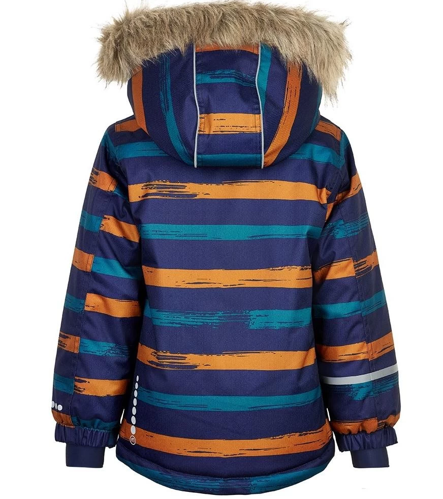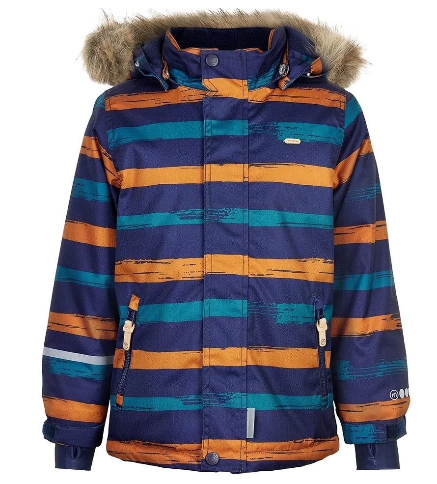 Die schön gestreifte Jungen Winterjacke von Minymo ist nicht nur wasserdicht, sondern zusätzlich auch winddicht und atmungsaktiv. Das hochwertige Funktionsmaterial hat eine leicht strukturierte Oberfläche im edlen Herringbone-Look. Wärmt kleine Entdecker zuverlässig, und hält Schmutz, Nässe und Kälte ab. Die ideale Winter-Outdoorjacke für Jungen, die in den Waldkindergarten gehen oder auf dem Abenteuerspielplatz rumtoben.Im Rücken etwas länger geschnitten, damit der Nierenbereich auch warm gehalten wird. In den großen Taschen finden nicht nur kalte Hände Platz zum aufwärmen, sondern auch wichtige Kleinigkeiten können darin verstaut werden.