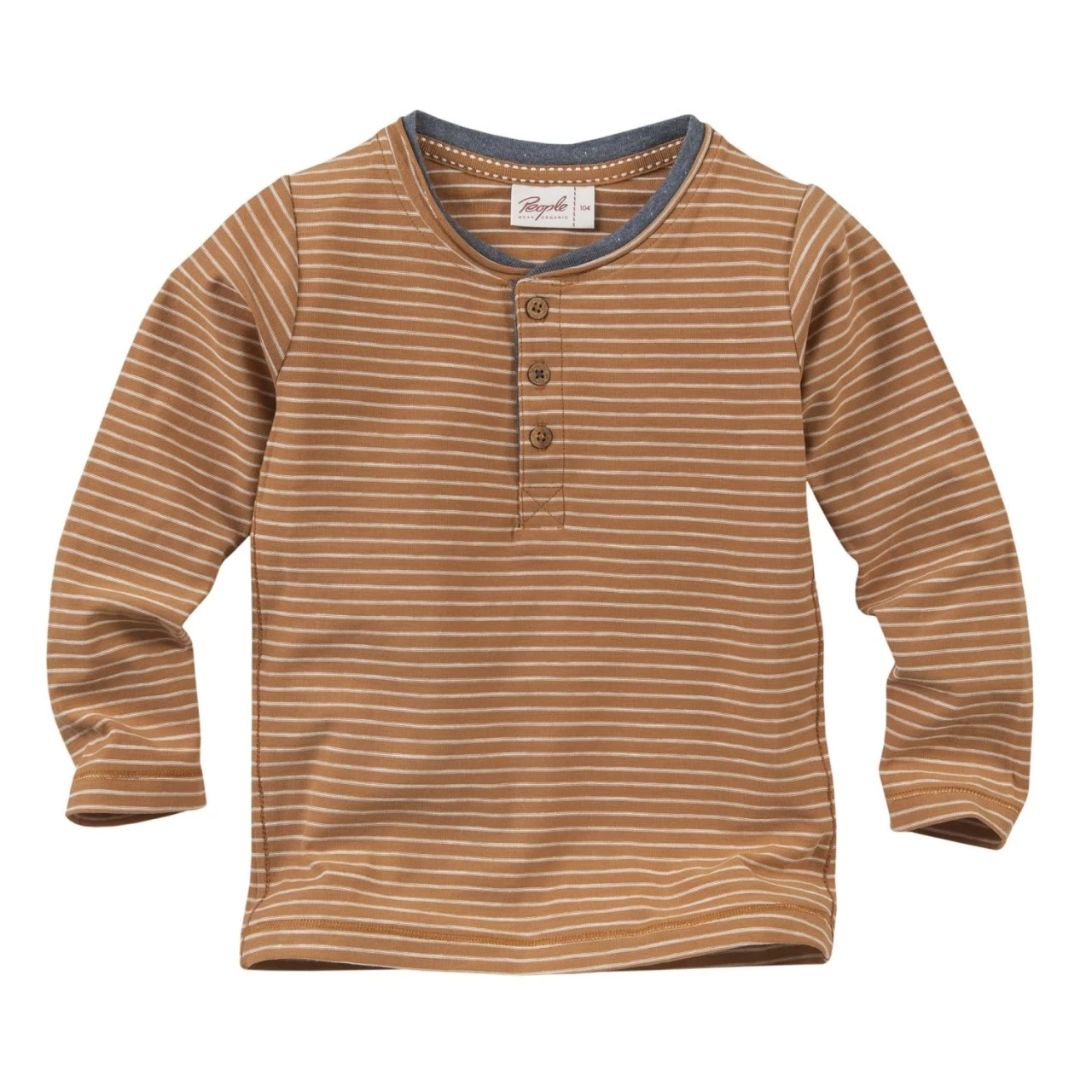 People Wear Organic – Henley Langarmshirt zimt geringelt aus Bio-Baumwolle