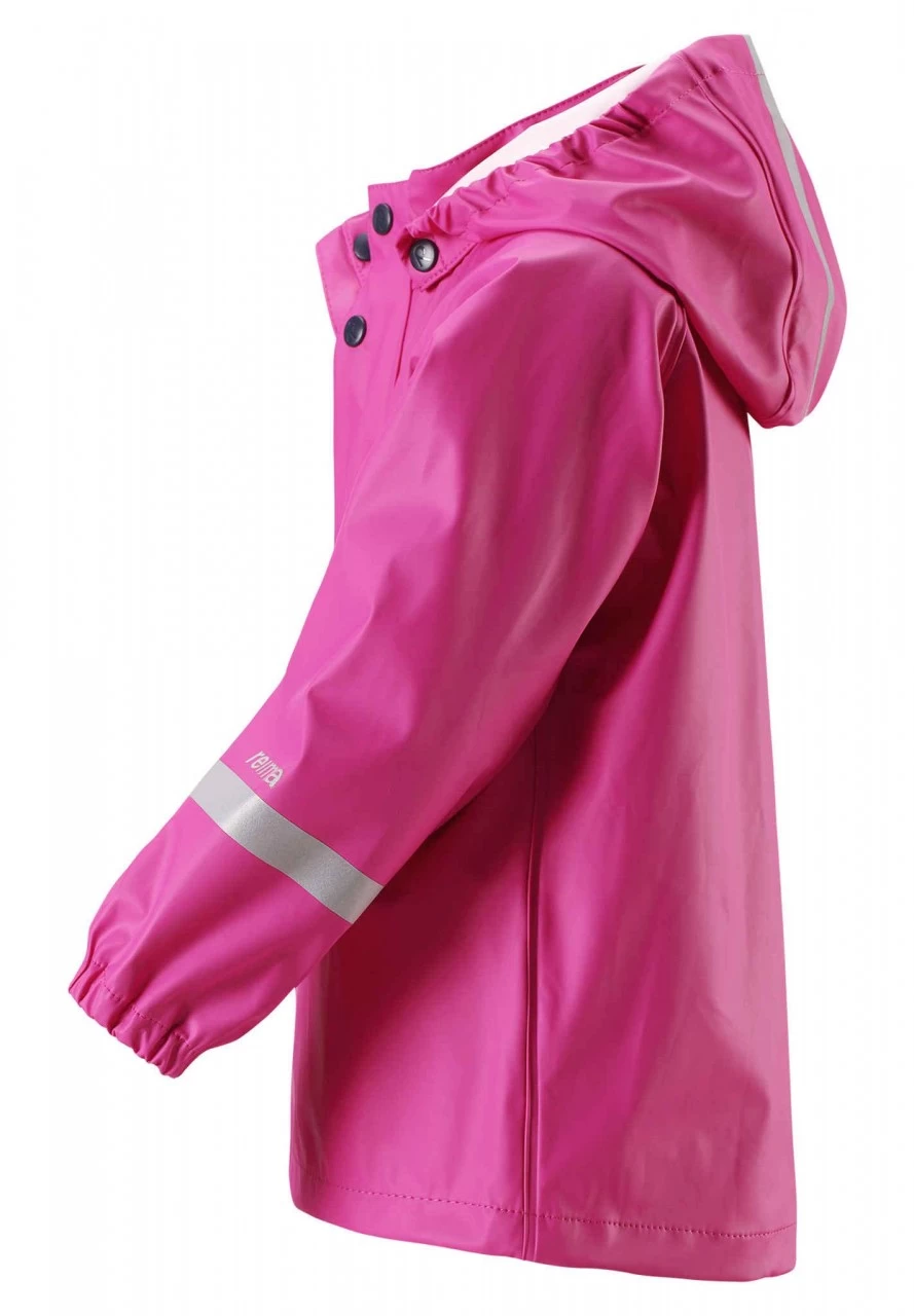 Wasserdichte Regenjacke mit abknöpfbarer Kapuze . Ideal für Kinder die auch bei Matschwetter und Regenschauern draußen aktiv sind. Die schöne Buddeljacke ist das für den Tragekomfort und die Funktionalität überarbeitete Modell aus der neuesten REIMA Kollektion. Robust und strapazierfähig mit verschweißten Nähten. Über dem Reißverschluß liegt noch eine zusätzliche Abdeckleiste. Dadurch werden Schmutz, Wasser, Regen und Sand zuverlässige abgewiesen, die Kleidung ist geschützt. Die Ärmelanden haben praktische Gummibündchen.Die Reflektorstreifen an den Ärmeln bieten hohe Sichtbarkeit bei schlechten Lichtverhältnissen im Straßenverkehr.